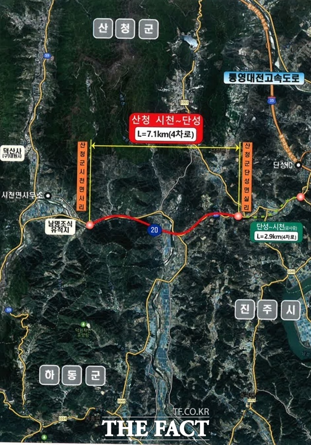 [더팩트ㅣ사천=이경구 기자] 경남 산청군은 '국도 20호선 단성~시천 간 4차로 확장'과 '국도 59호선 산청~차황 간 굴곡도로 선형 개량'사업이 국토교통부 제6차 국도·국지도 5개년 도로건설계획(2026~2030년)의 일괄 예비타당성 조사 대상 사업으로 선정됐다고 31일 밝혔다.