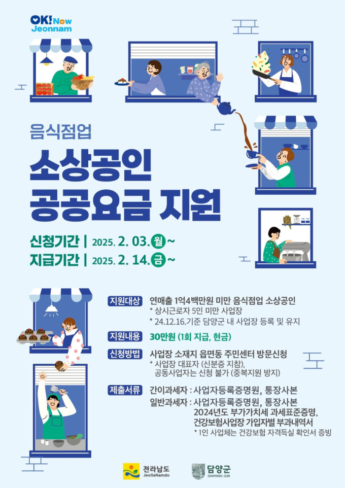 음식점압 소상공인 공공요금 지원 안내문. [사진=담양군] 2025.01.31 ej7648@newspim.com |