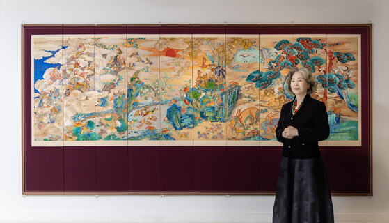 두 번째인 이번 개인전에는 첫 개인전 전시 작품들에, 347×184㎝ 크기의 10폭 병풍 ‘서수도(瑞獸圖)’ 등 신작을 일부 추가해 모두 43점을 내놓았다. 병풍 같은 대작 이외에 보석함과 이층장, 신부 꽃신에 노리개까지, 과거 자수가 우리 일상생활에 얼마나 광범위하게 활용됐는지를 여실히 보여주는 전시 구성이다.