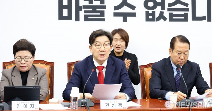 [서울=뉴스핌] 정일구 기자 = 권성동 국민의힘 원내대표가 3일 오전 서울 여의도 국회에서 열린 비상대책위원회의에서 모두발언을 하고 있다. 2025.02.03 mironj19@newspim.com