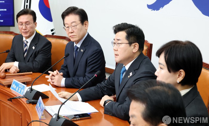 [서울=뉴스핌] 정일구 기자 = 박찬대 더불어민주당 원내대표가 3일 오전 서울 여의도 국회에서 열린 최고위원회의에서 모두발언을 하고 있다. 2025.02.03 mironj19@newspim.com