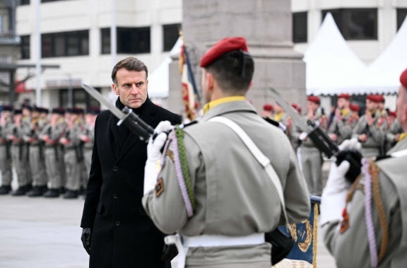에마뉘엘 마크롱 프랑스 대통령이 2일(현지시간) 제2차 세계대전 말기인 1945년 2월2일 프랑스 동부 알자스주의 도시 콜마르가 나치 독일의 점령에서 해방된 지 80주년이 된 것을 기리는 기념식에 참석해 의장대를 사열하고 있다. AFP연합뉴스 |