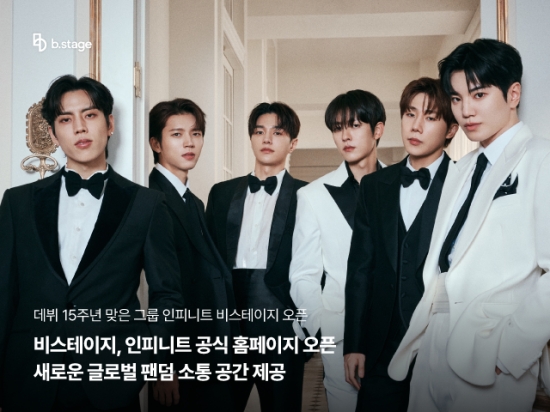 3일 비스테이지는 인피니트컴퍼니가 인피니트 데뷔 15주년을 기념해 팬덤 비즈니스 솔루션 '비스테이지(b.stage)'를 기반으로 한 공식 홈페이지를 개설했다고 밝혔다.