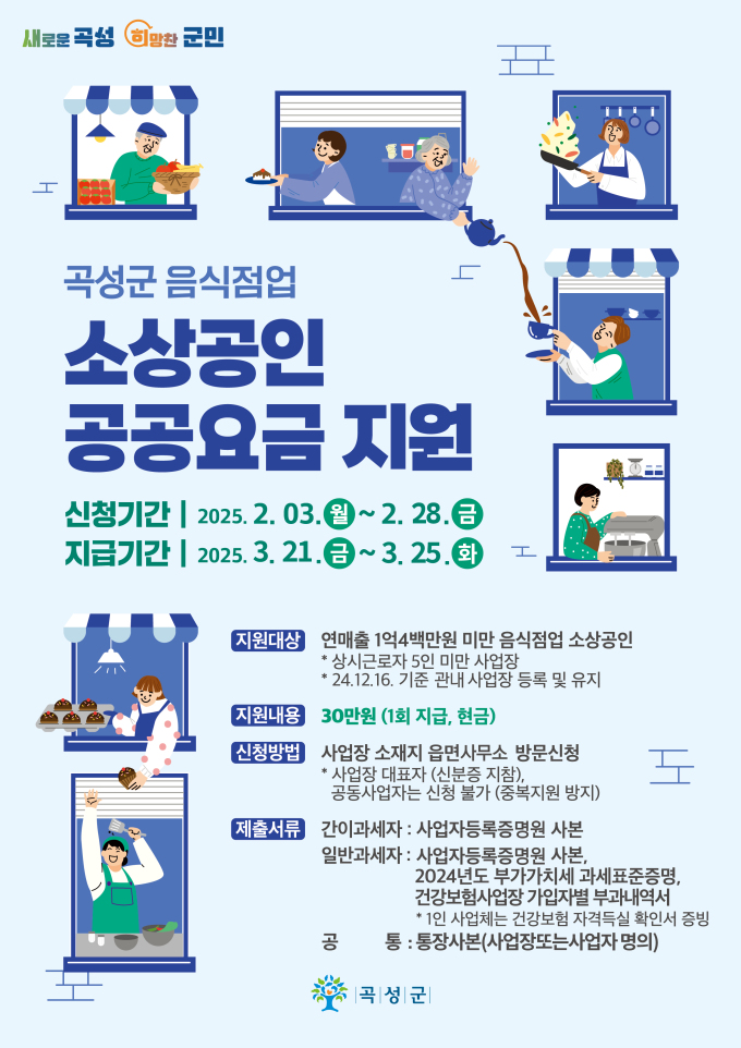 음식점업 소상공인 공공요금 30만원 지원 안내문. [사진=곡성군] 2025.02.04 ojg2340@newspim.com |