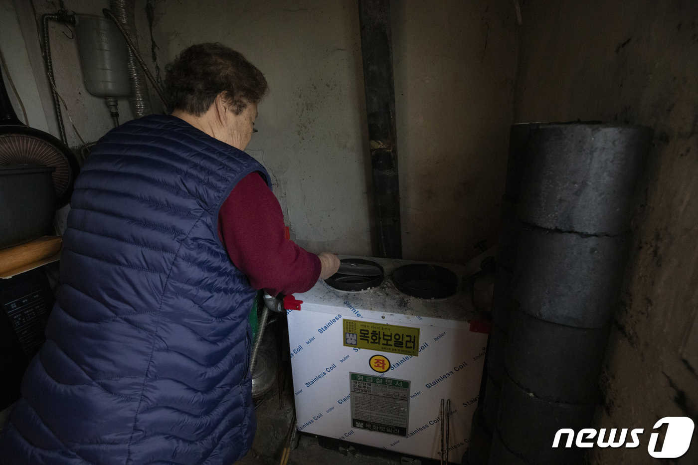 서울 서대문구 홍제동 개미마을에서 한 주민이 연탄으로 난방을 하고 있다. 2023.2.14/뉴스1 ⓒ News1 신웅수 기자 |