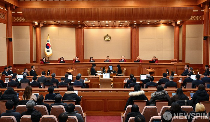 [서울=뉴스핌] 사진공동취재단 = 내란 우두머리 혐의로 구속 기소된 윤석열 대통령의 탄핵 심판 5차 변론이 열린 4일 서울 종로구 헌법재판소 대심판정에서 열리고 있다. 2025.02.04 photo@newspim.com