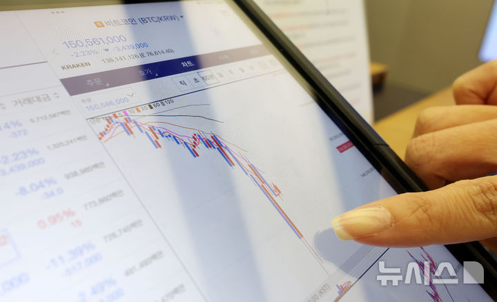 [서울=뉴시스] 홍효식 기자 = 관세 전쟁 여파로 비트코인 가격이 10만 달러 밑으로 급락한 가운데 3일 서울 강남구 업비트 고객센터 태블릿에 비트코인 차트가 하락곡선을 보이고 있다. 2025.02.03. yesphoto@newsis.com |