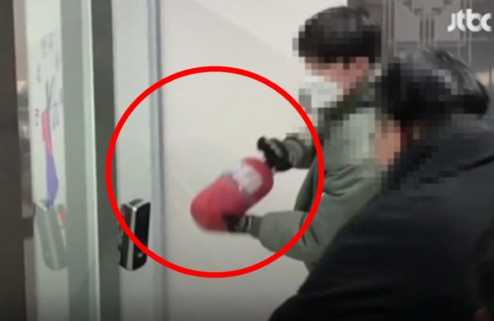소화기로 법원 내부 유리문을 파손하려 하거나 보안장치를 훼손하는 장면도 포착됐다.