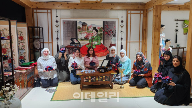 주아랍에미리트 한국문화원에서 진행하는 ‘화협옹주의 방’ 전시 공간 및 체험행사 현장. (사진=국가유산청) |