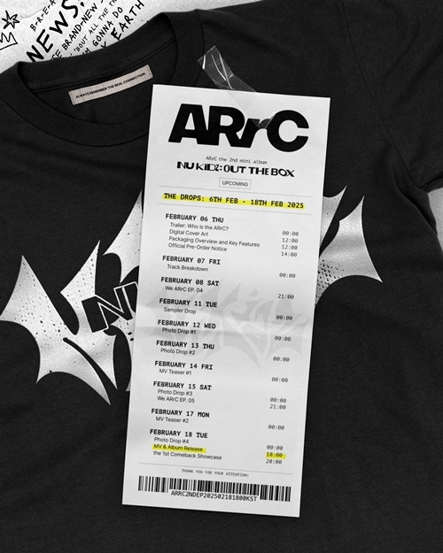 아크(앤디, 최한, 도하, 현민, 지빈, 끼엔, 리오토)는 5일 0시와 낮 12시 공식 SNS에 미니 2집 ‘nu kidz: out the box(뉴 키즈: 아웃 더 박스)’의 로고 시퀀스와 프로모션 스케줄러를 차례로 선보였다.