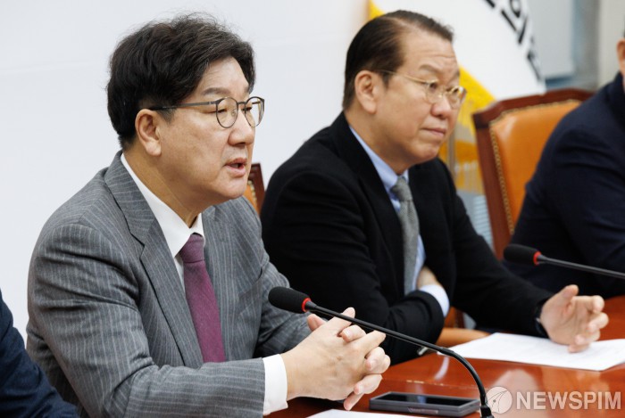 [서울=뉴스핌] 윤창빈 기자 = 권성동 국민의힘 원내대표가 6일 오전 서울 여의도 국회에서 박한신 제주항공 여객기 참사 유가족 대표를 비롯한 유가족들과 면담을 하며 발언하고 있다. 2025.02.06 pangbin@newspim.com