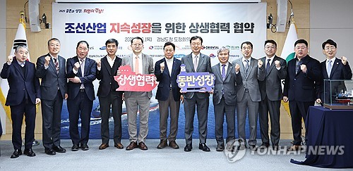 (창원=연합뉴스) 이정훈 기자 = 경남도 등 12개 기업과 기관은 6일 도청에서 조선산업 지속성장을 위한 상생협력 업무협약을 했다.