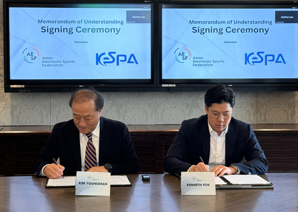 이날 한국e스포츠협회(이하 협회) 김영만 회장은 마카오에서 아시아이스포츠연맹(이하 AESF) 케네스 포크 회장과 만나 ▲이스포츠 경기감독관(Technical Official) 양성과정 공동개발 ▲글로벌 지도자 및 심판 자격 연수 과정 개발 ▲대한민국 이스포츠 국가대표 선진 운영 사례의 표준화 및 고도화 공동 노력 등 협력을 이어가기로 했다. 이번 협약은 2028년 1월 31일까지다.