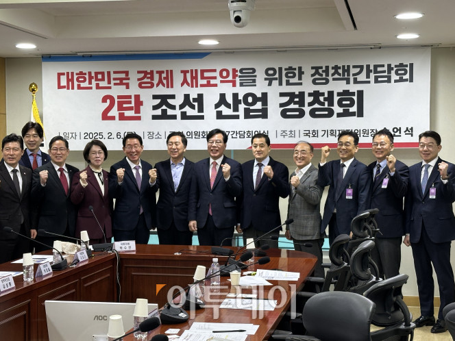 국회 기획재정위원장인 송언석 국민의힘 의원은 이날 오전 조선 업계의 목소리를 청취하기 위해 ‘대한민국 경제 재도약을 위한 정책간담회’를 개최했다. 간담회에는 김상훈 정책위원장과 당 대표를 지낸 김기현 의원, 박수영 기재위 간사 등도 참석했다. 업계에선 한국조선해양플랜트협회 및 주요 기업 관계자들이 자리했다.