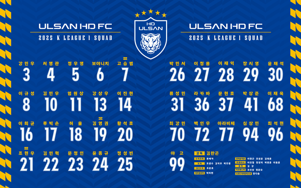 [스포츠투데이 강태구 기자] 울산 HD가 2025시즌 K리그1 개막을 앞두고 선수단의 등번호를 발표했다.