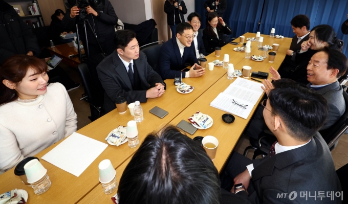 1973년생 이하 친한동훈계 모임인 '언더73'이 7일 오후 서울 동작구 김영삼도서관을 찾아 김영삼 전 대통령의 차남인 김현철 김영삼대통령기념재단 이사장과 이야기를 나누고 있다. 왼쪽부터 반시계방향으로 김소희 의원, 류제화 세종시갑 당협위원장, 김상욱 의원, 진종오 의원 ,김예지 의원, 박상수 인천 서구갑 당협위원장, 김준호 전대변인, 김현철김영삼대통령기념재단 이사장, 정혜림 전 부대변인, 신주호 전 부대변인. 2025.02.07. /사진=뉴시스 /사진= |