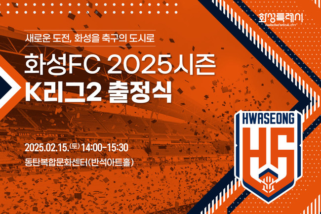 [인터풋볼] 주대은 기자 = 화성FC가 2월 15일(토)에 화성FC 팬, 선수단과 함께 2025시즌 K리그2 프로 진출에 대한 다짐과 새 출발을 알리는 출정식을 개최한다.