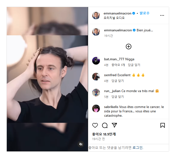 마크롱 대통령은 인스타그램에 “Bien joué(잘 만들었다)”고 적었다.