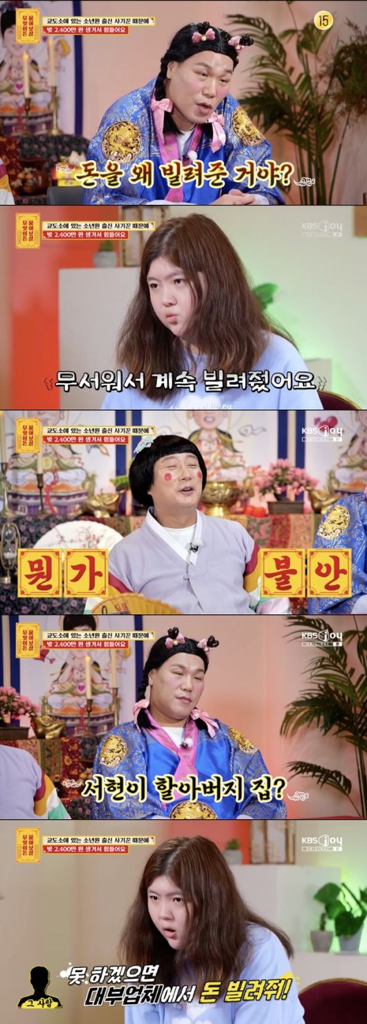 사기꾼에게 총 4회에 걸려서 133만 원을 빌려줬다는 사연자. 서장훈은 왜 돈을 빌려줬냐고 물었고, 사연자는 “소년원 출신이라는 걸 알고 무서워서 빌려줬다. 다혈질이고 윽박질렀다”라고 답했다.