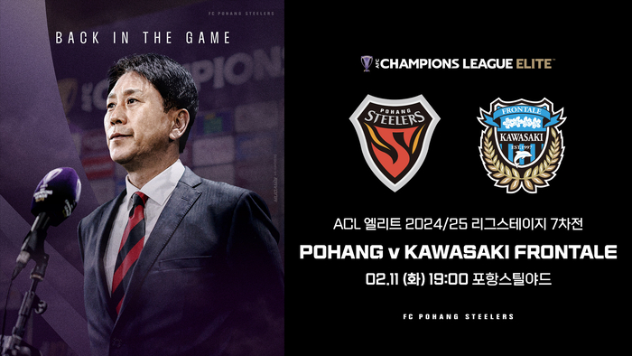 박태하 감독이 이끄는 포항 스틸러스는 11일 오후 7시 포항스틸야드에서 2024~2025 아시아 챔피언스리그 엘리트(ACLE) 가와사키 프론탈레(일본)와 리그 스테이지 7차전을 치른다. 포항은 6경기에서 3승3패(승점 9)를 거둬 5위에 올라 있다. 8위까지 토너먼트 무대에 오를 수 있는 만큼, 포항도 방심할 수 없다. 9위 상하이 선화(중국)와 격차가 1경기 이내다.