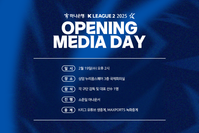 한편 개막 미디어데이는 19일 오후 2시부터 K리그 공식 유튜브 채널에서 생중계되며, MAXPORTS에서 녹화중계된다.