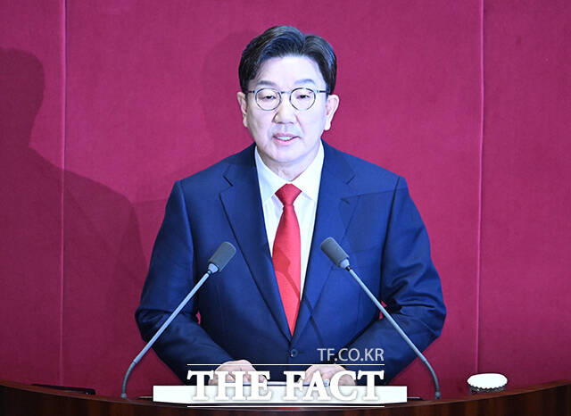 [더팩트ㅣ국회=신진환 기자] 권성동 국민의힘 원내대표가 11일 더불어민주당과 이재명 대표를 작심 비판했다. 이들이 의회 독주와 입법 폭거를 자행하며 대한민국을 위기로 빠뜨렸다라는 취지로 강하게 질타했다. 특히 민주당을 이 대표의 숭배 세력이라고 비난했다.