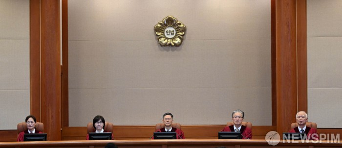 [서울=뉴스핌] 사진공동취재단 =헌법재판관들이 11일 서울 종로구 헌법재판소에서 열린 윤석열 대통령 7차 탄핵심판에 참석해 있다.2025.02.11 photo@newspim.com