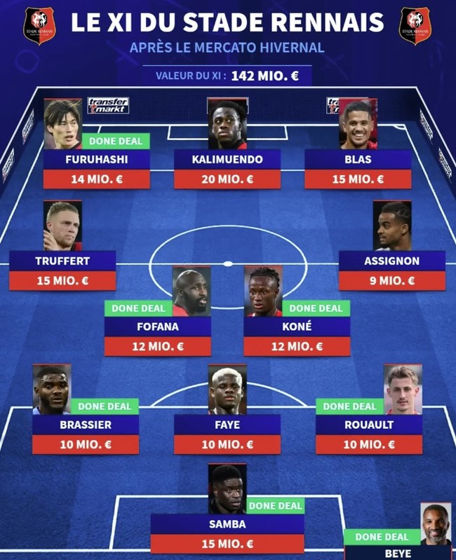 축구 통계 매체 '트랜스퍼마크트' 프랑스판은 11일(이하 한국시간) 공식 SNS를 통해 겨울 이적 시장을 보낸 스타드 렌 베스트11을 공개했다.