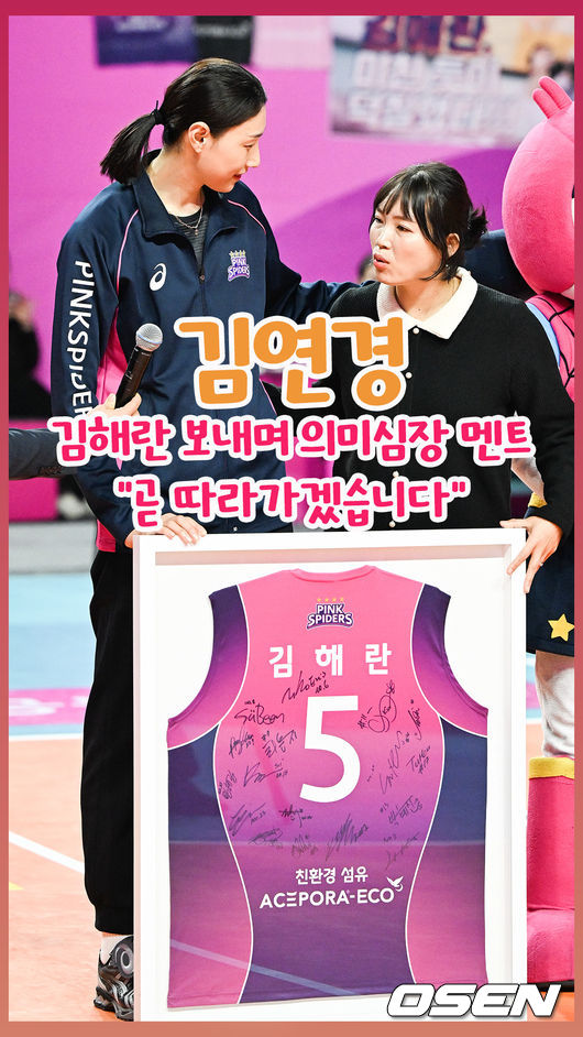 김연경이 은퇴하는 김해란 향해 자신의 은퇴를 암시하는 발언을 하고 있다. 2025.02.11 / soul1014@osen.co.kr