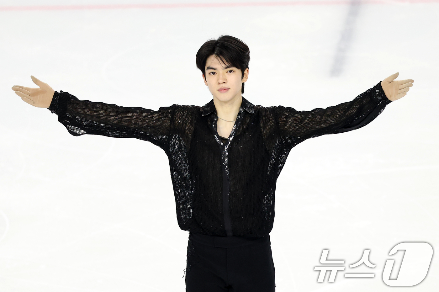 (하얼빈=뉴스1) 안영준 기자 = 한국 피겨 스케이팅 남자 싱글 간판 차준환(고려대)이 2025 하얼빈 동계 아시안게임 쇼트 프로그램에서 2위로 출발, 메달 가능성을 키웠다.