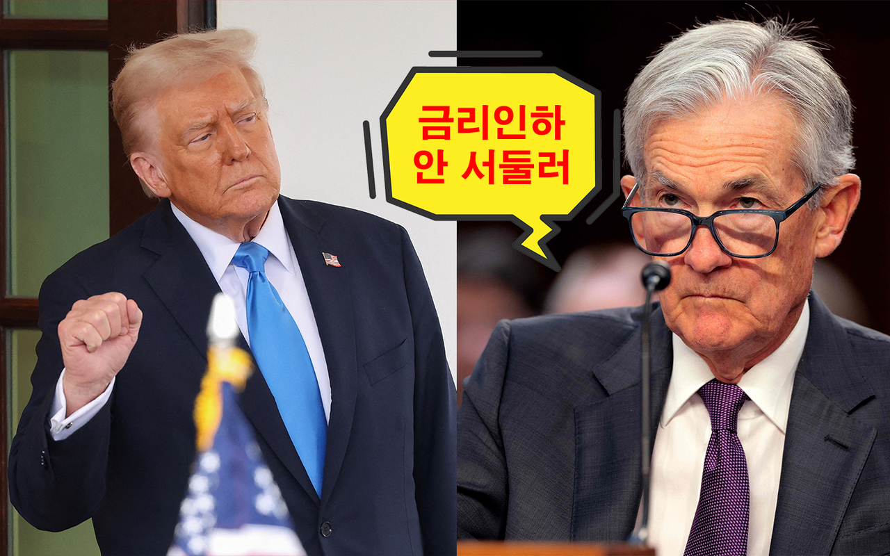 도널드 트럼프(왼쪽) 미국 대통령과 제롬 파월 미 연방준비제도(Fed·연준) 의장. [로이터, AP] |
