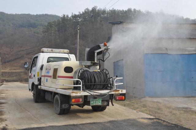 순창군서 가금류 농장에 대한 조류 인플루엔자 방역이 실시되고 있다.[사진=순창군] |