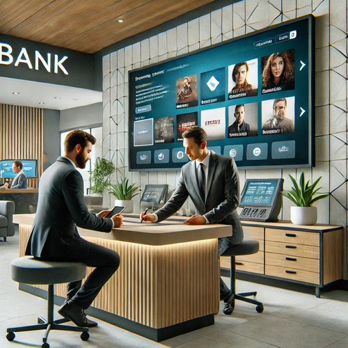은행에 가서 OTT 구독 서비스에 가입하는 모습을 AI가 그린 이미지 |