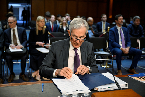 11일(현지시간) 미국 연방 상원 청문회에 출석한 제롬 파월 연방준비제도(Fed) 의장. 로이터=연합뉴스 |