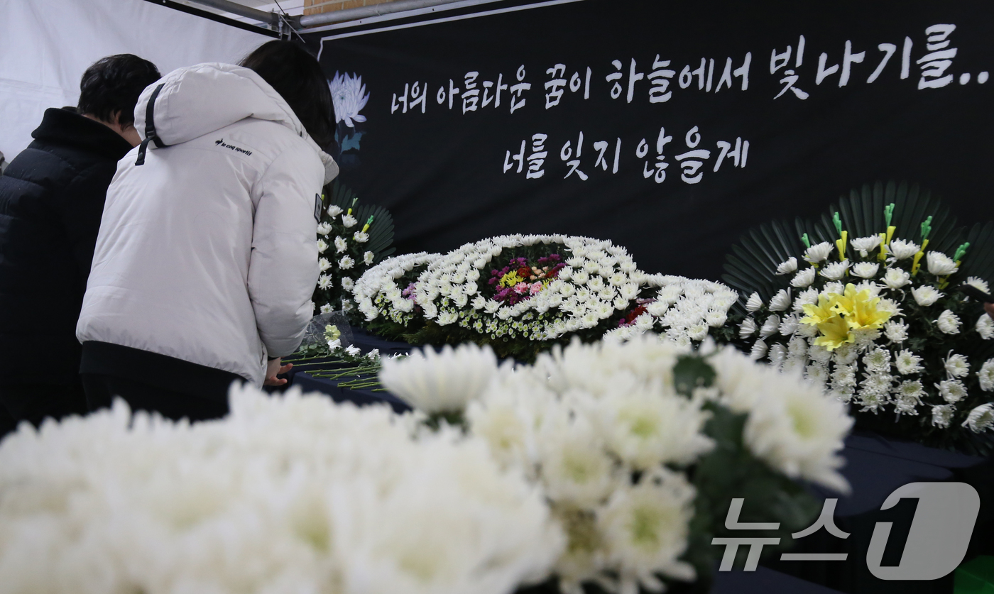12일 대전 초등학생 피살사건이 발생한 대전 서구의 한 초등학교에 마련된 분향소에서 추모객들이 김하늘양을 추모하고 있다. 2025.2.12/뉴스1 ⓒ News1 양상인 기자 |