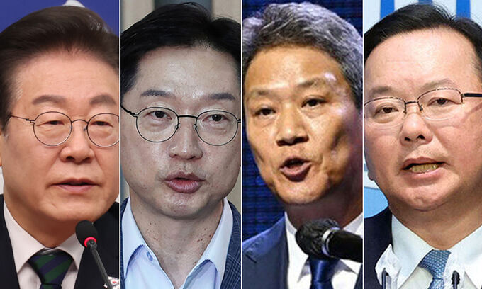 왼쪽부터 이재명 더불어민주당 대표, 김경수 전 경남도지사, 임종석 전 대통령비서실장, 김부겸 전 국무총리 |