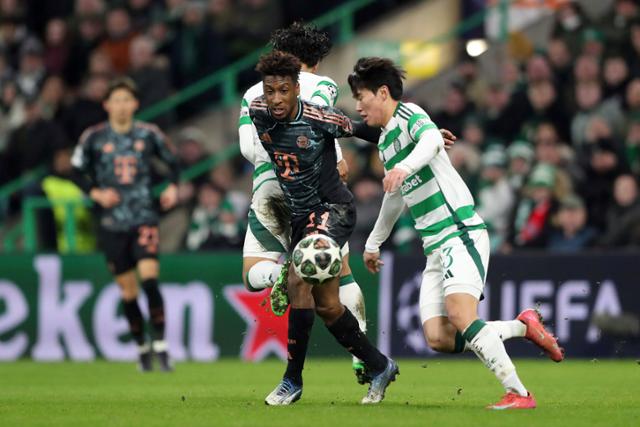 셀틱의 양현준(오른쪽)이 13일(한국 시간) 스코틀랜드 글래스고의 셀틱 파크에서 열린 2024~25시즌 유럽축구연맹(UEFA) 챔피언스리그(UCL) 16강 진출 플레이오프 1차전 뮌헨과 경기 중 공을 다투고 있다. 후반 교체 출전한 양현준은 마에다 다이젠의 만회골을 어시스트했지만 팀은 1-2로 패했다. 글래스고=AP 뉴시스 |