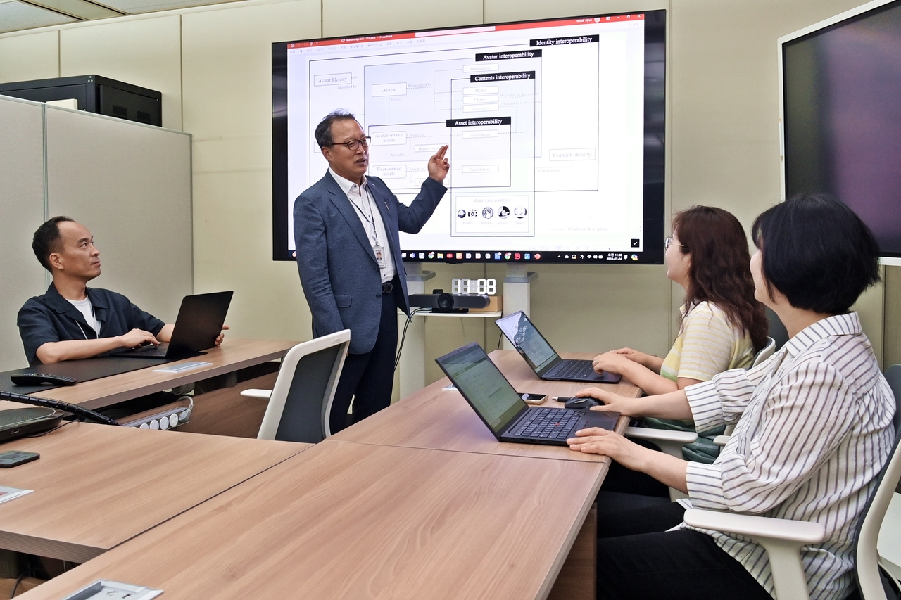 ETRI연구진이 메타버스 국제표준 관련 논의를 진행하고 있다.[ETRI 제공] |