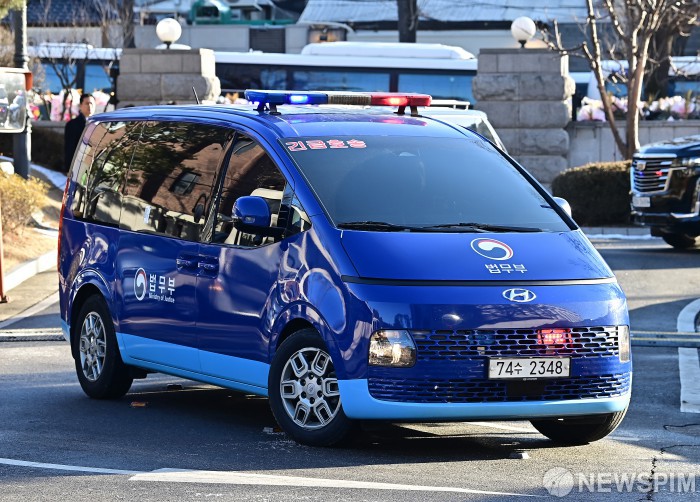 [서울=뉴스핌] 사진공동취재단 = 윤석열 대통령이 탑승한 호송차가 탄핵 심판 8차 변론기일이 열리는 13일 오전 서울 종로구 헌법재판소로 들어오고 있다. 2025.02.13 photo@newspim.com