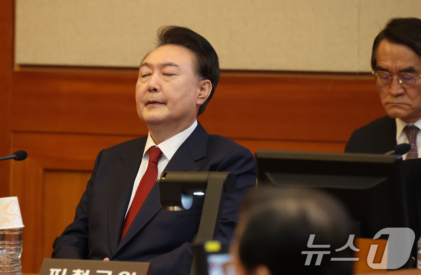 (서울=뉴스1) 사진공동취재단 = 윤석열 대통령이 13일 서울 종로구 헌법재판소에서 열린 탄핵심판 8차 변론에 출석해 생각에 잠겨 있다. 2025.2.13/뉴스1