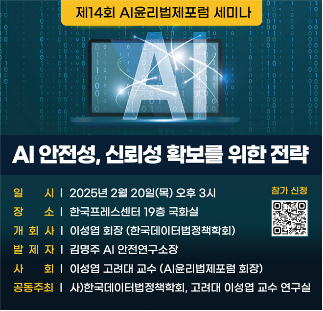 포럼 회장인 이성엽 교수는 “AI 기본법에서 안전성 및 신뢰성 확보에 관한 규정이 도입되었고, 최근 딥시크 공격 등으로 인해 AI를 통한 정보보안 위험이 증대된 상황에서, AI 안전성과 신뢰성 확보를 책임지고 있는 기관들의 전략을 듣고 향후 과제를 논의하는 중요한 자리가 될 것”이라고 밝혔다.