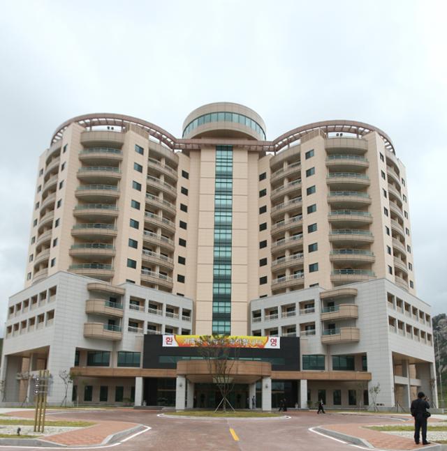 북한이 금강산 관광지구 내 남측 마지막 정부 시설인 이산가족면회소 철거를 시작했다고 통일부가 13일 밝혔다. 사진은 이산가족면회소 외부 전경. 통일부 제공 |