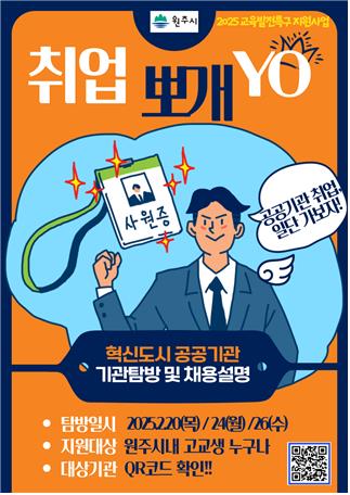 (원주=연합뉴스) 임보연 기자 = 원주시는 교육발전특구 지원사업으로 '2025 혁신도시 공공기관 탐방 프로그램'을 운영한다.