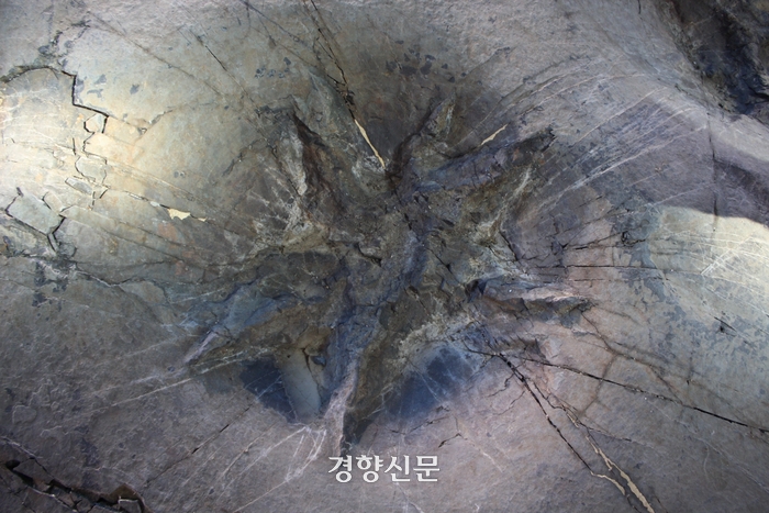 전남 해남군 우항리에서는 발자국 중앙에 별 모양이 선명한 특별한 공룡발자국이 발견됐다. 해남군 제공. |