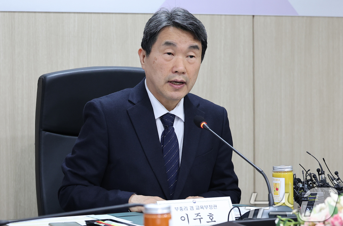 이주호 사회부총리 겸 교육부 장관이 14일 서울 영등포구 한국교육시설안전원에서 대전 초등학생 사망사건 관련 제66차 함께차담회를 주재하고 있다. 2025.2.14/뉴스1 ⓒ News1 김성진 기자 |