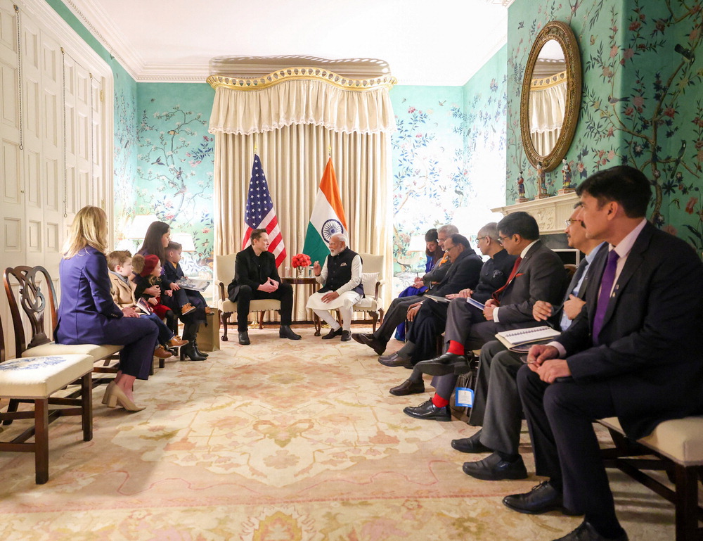 모디 총리는 이날 백악관 인근 블레어하우스에서 머스크와 만난 후 자신의 엑스(X·옛 트위터)에 "아주 좋은 만남이었다"고 밝혔다. 그는 "우리는 머스크가 관심을 보이는 우주·기술·혁신 등 다양한 이슈에 대해 논의했다"며 "나는 '최소 정부와 최대 거버넌스, 개혁에 대한 인도 정부의 노력에 관해 이야기했다"고 말했다.