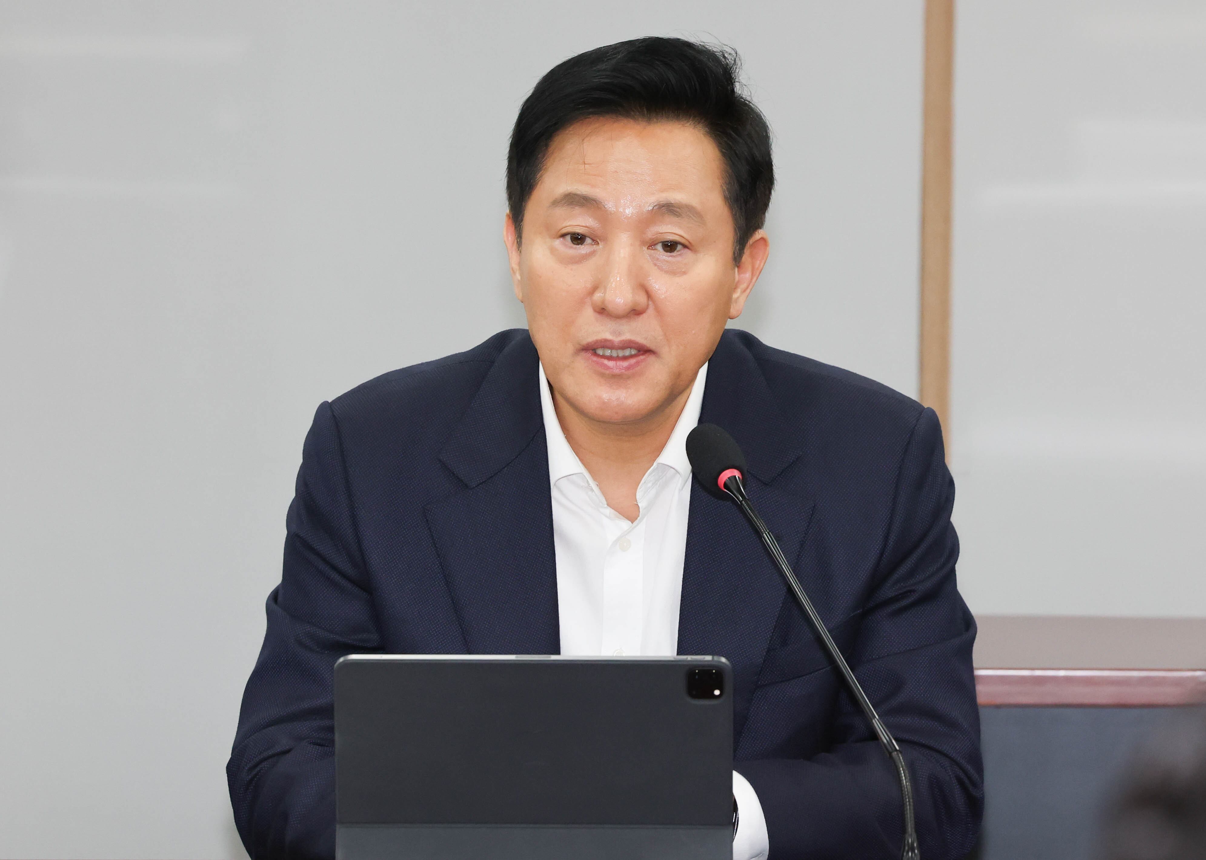 오세훈 서울시장이 13일 서울시청에서 열린 서울시 투자· 출연기관 규제철폐 보고회에서 모두발언을 하고 있다. 2025.2.13/뉴스1 |