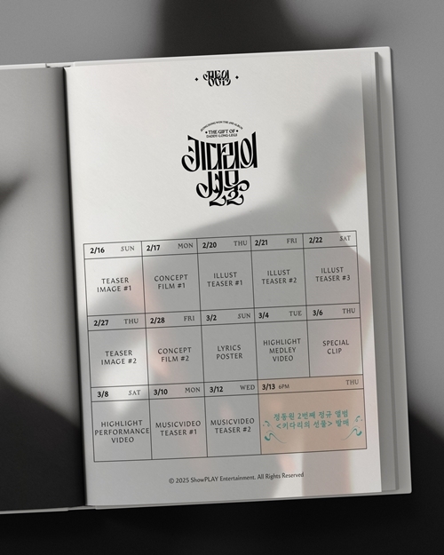 공개된 이미지는 소설책을 연상시키는 달력 위로 발매일까지의 사전 일정들이 표기되어 있다. 그 옆으로는 블랙 컬러의 중절모와 정장을 착용한 정동원의 실루엣이 함께 비치며 눈길을 끌었다.