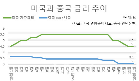 중국은 미국 기준금리 동향에 민감하다. 미국과 금리 격차가 벌어지면 국채금리 및 달러 대비 위안화 하락 압력이 커져서 금융시장 변동성이 커지고 해외 자금이 빠져나갈 수 있어서다.