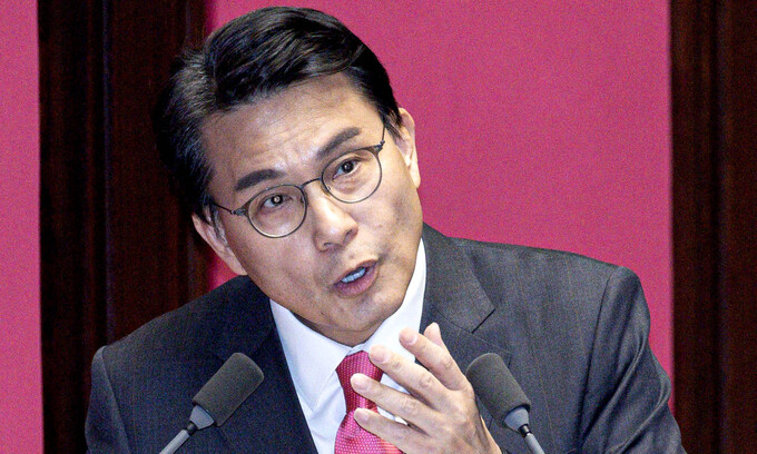 윤상현 국민의힘 의원이 12일 오후 서울 여의도 국회에서 열린 제422회 국회(임시회) 제4차 본회의에서 김석우 법무부 장관 직무대행에게 정치·외교·통일·안보 분야 대정부질문을 하고 있다. 뉴스1 |